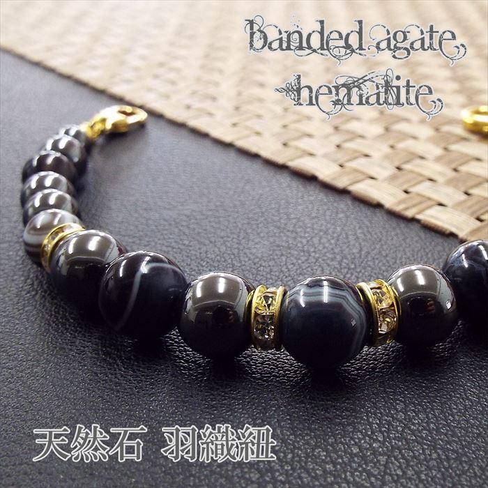 - 天然石 羽織紐 和装小物 着付け小物 黒縞瑪瑙 ヘマタイト パワーストーン 模様 作務衣 男性 葬儀