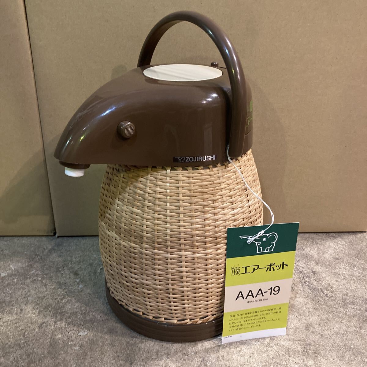 > 未使用品 タグ付き 象印 籐エアーポット 1.9リットル 魔法瓶 ZOJIRUSHI AAA-19 ラタン 昭和レトロ