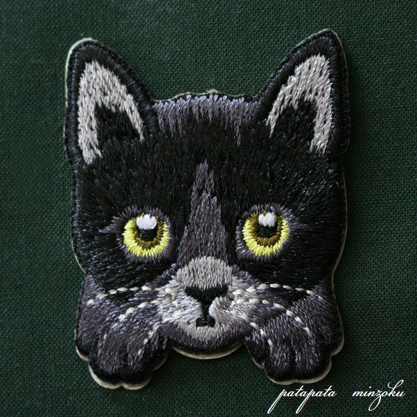 > 黒猫 刺繍 シール & アイロン ワッペン アップリケ ステッカー 猫 ねこ ネコ 子猫 クロネコ 雑貨 パタミン ハンドメイド
