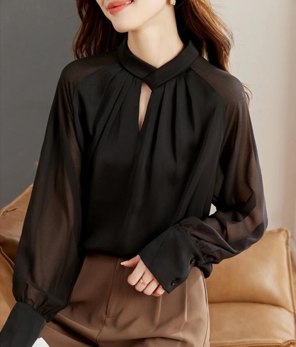 - 新入荷*高品質 なデザインな ブラウス 長袖シャツ エレガント 女性 ビジネス オフイス トップス 着やせ 園行事 通勤 シャツ ブラウス * 黒