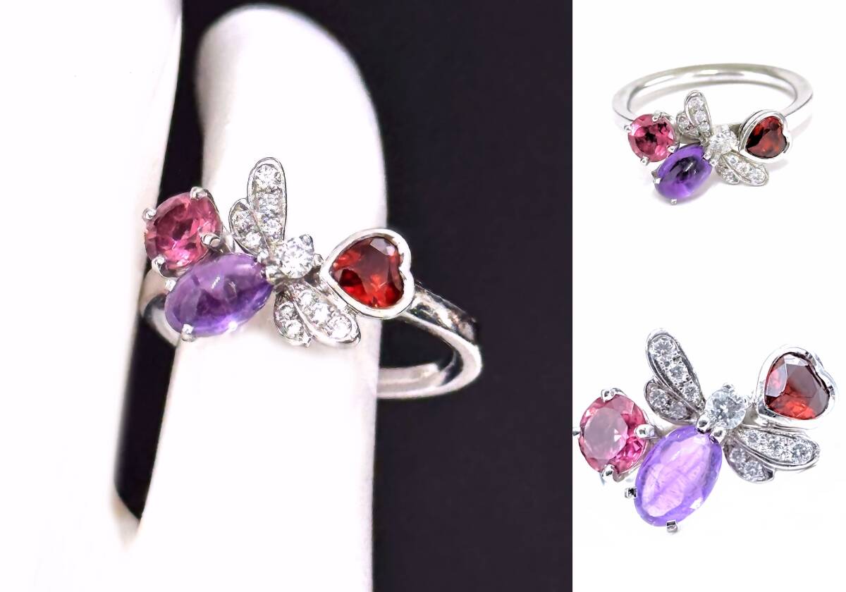 - CHAUMET ショーメ Attrape Moi アトラップ モワ リング ダイヤモンド ピンクトルマリン アメジスト ガーネット K18 WG 指輪 10号