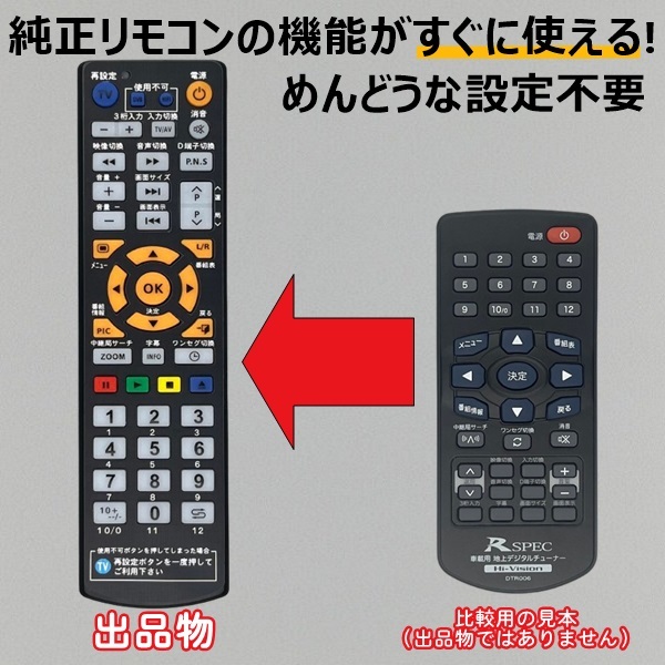 - 【代替リモコン260】RSPEC DTR006 互換 送料無料(HIT7700 HIT7700Ⅱ HIT7700Ⅲ用)データシステム アールスペック 車載用 地デジチューナー