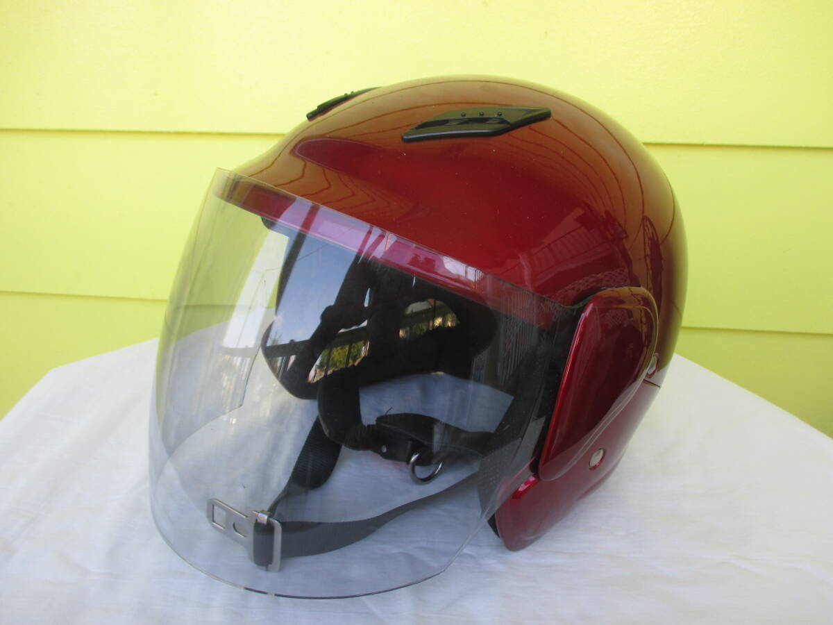 > ★ヘルメット(バイク用) 125CC以下 22年製 NT-007 アクティープアン サイズフリー(57~60㎝) ベルト部分に小さな剥がれ有(画像9)