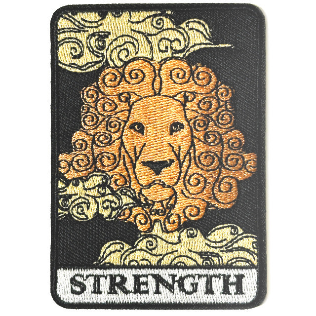 - w8515 ライオン タロットカード ワッペン 刺繍アップリケ 1枚【リメイク 猫科動物 手作り材料ハンドメイド アクセサリー素材】蒸気猫パーツ