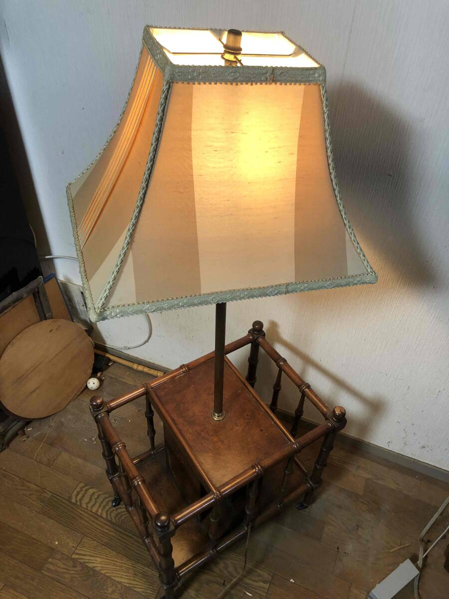 - レア アンティークランプ レトロ家具 ランプシェード 読書灯 飾り棚 マガジンラック付き レトロ フロアスタンド