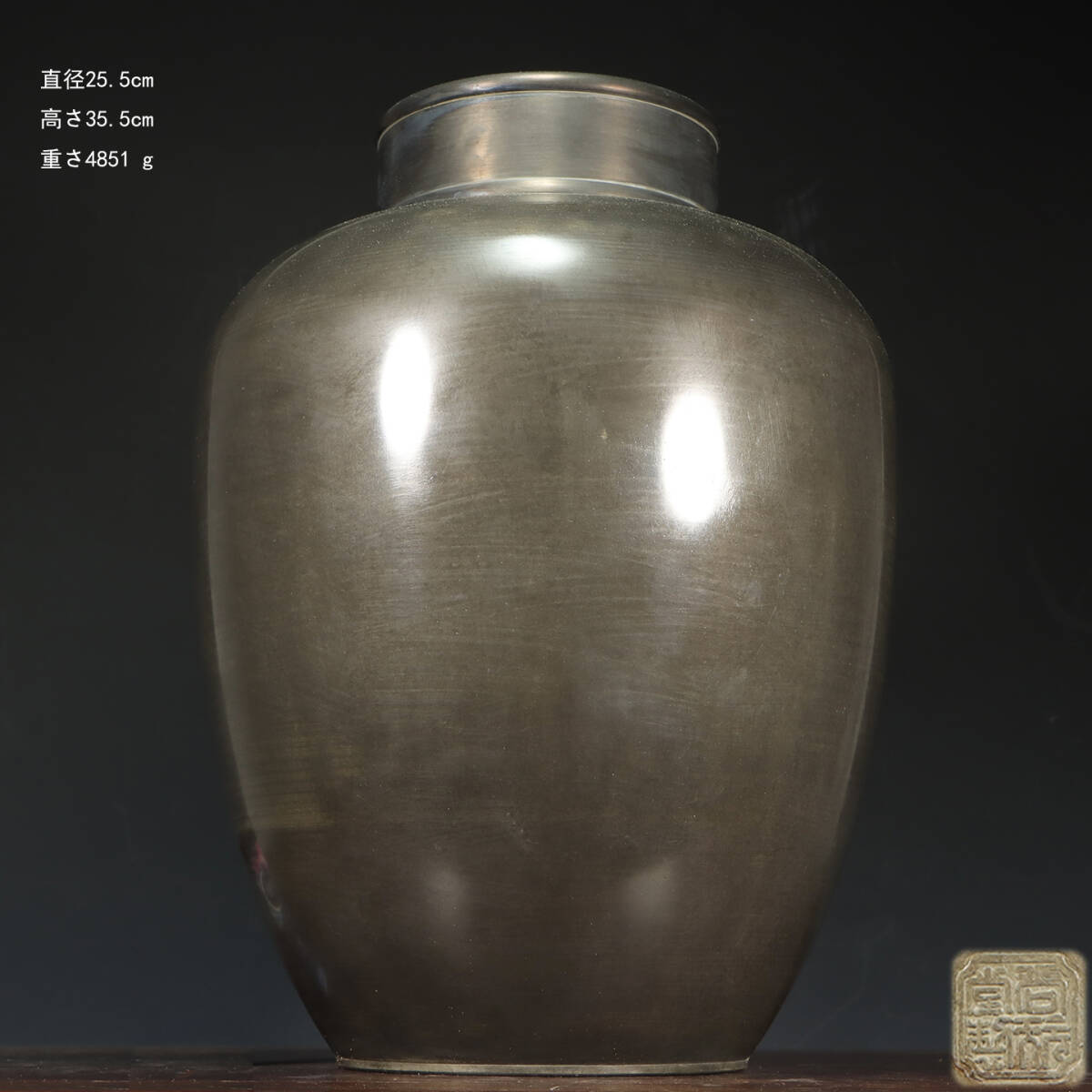 - 古錫 茶葉罐 尚玩堂製 「錫製無紋大茶心壺」 茶筒 茶入 茶壷 茶道具 錫肌 茶器 時代物 重さ4851g LT-250905