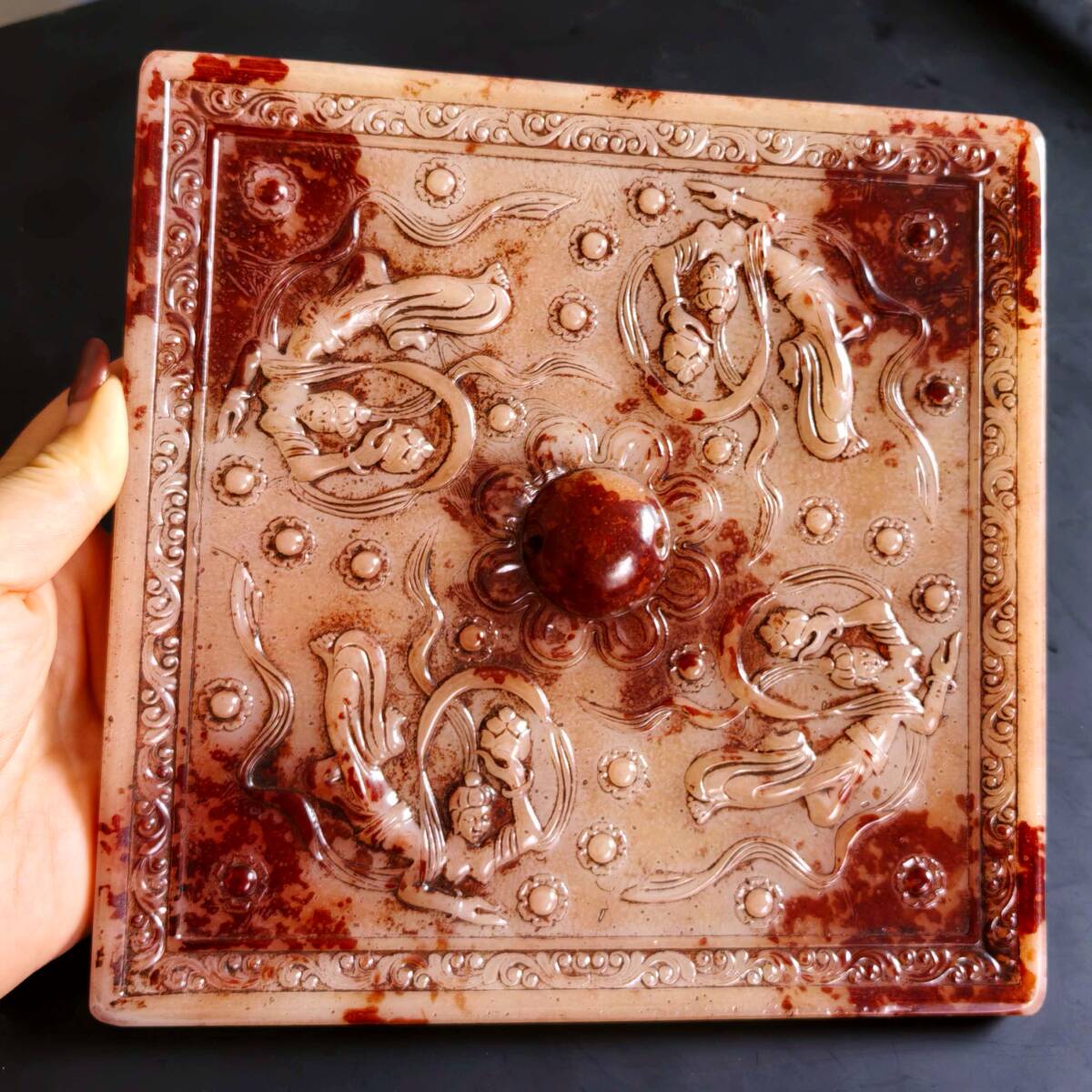 - 敦煌石窟・飛天トーテム 古玉 秘藏 清代 白玉 かく玉璧 唐物 古玉彫 天然石 稀少珍品 古美術 古賞物 古置物 旧蔵 AC90803