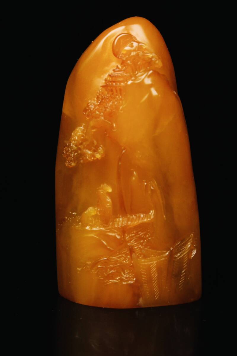 - ◆珍蔵◆中国古美術 清代 古寿山石 田黄石彫り深山訪友図印章 精品 細密細工造 置物 擺件 古賞物 時代物 A68