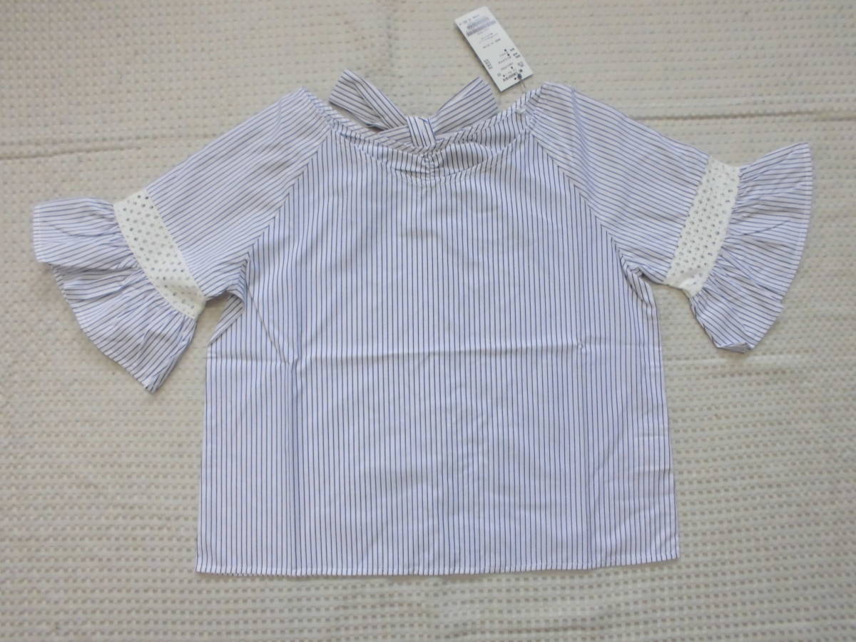 - 1822 ■MAJESTIC LEGON ベルスリーブブラウス ブルー/ストライプ柄 M■新品