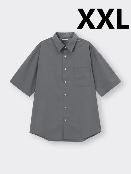 > 新品 GU ブロードオーバーサイズシャツ 5分袖 XXL グレイ 限定サイズ 未使用タグ付き ジーユー メンズ 大きいサイズ ビッグシルエット