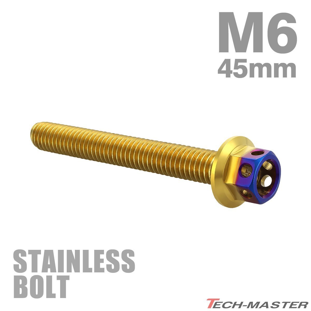 > M6×45mm P1.0 フランジボルト ヘキサゴンヘッド ステンレス ゴールド×焼きチタンカラー エンジン 車 バイク カスタム 1個 TB0791