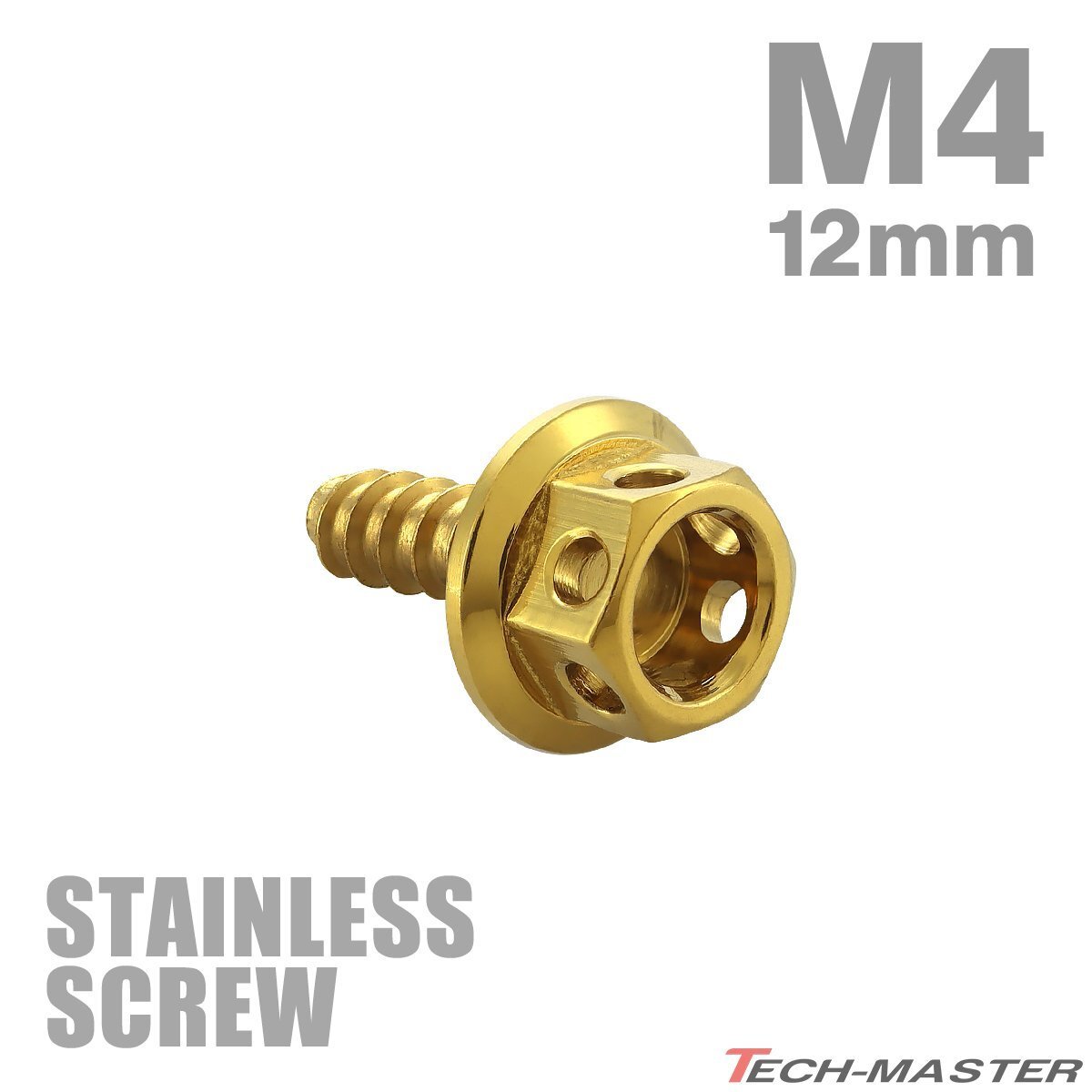 > M4×12mm タッピングネジ ビス ヘキサゴンヘッド ステンレス ゴールド カウル フェンダー エンジン 車 バイク カスタム 1個 TC0006
