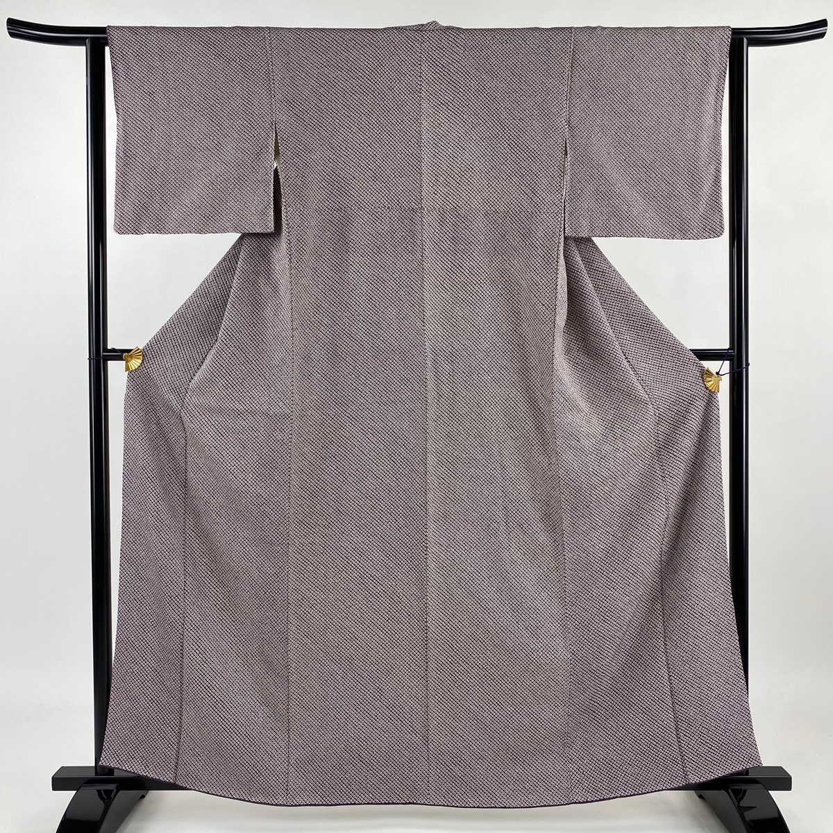 - 小紋 身丈160cm 裄丈63cm S 袷 幾何学 総絞り 灰紫 正絹 秀品 【中古】