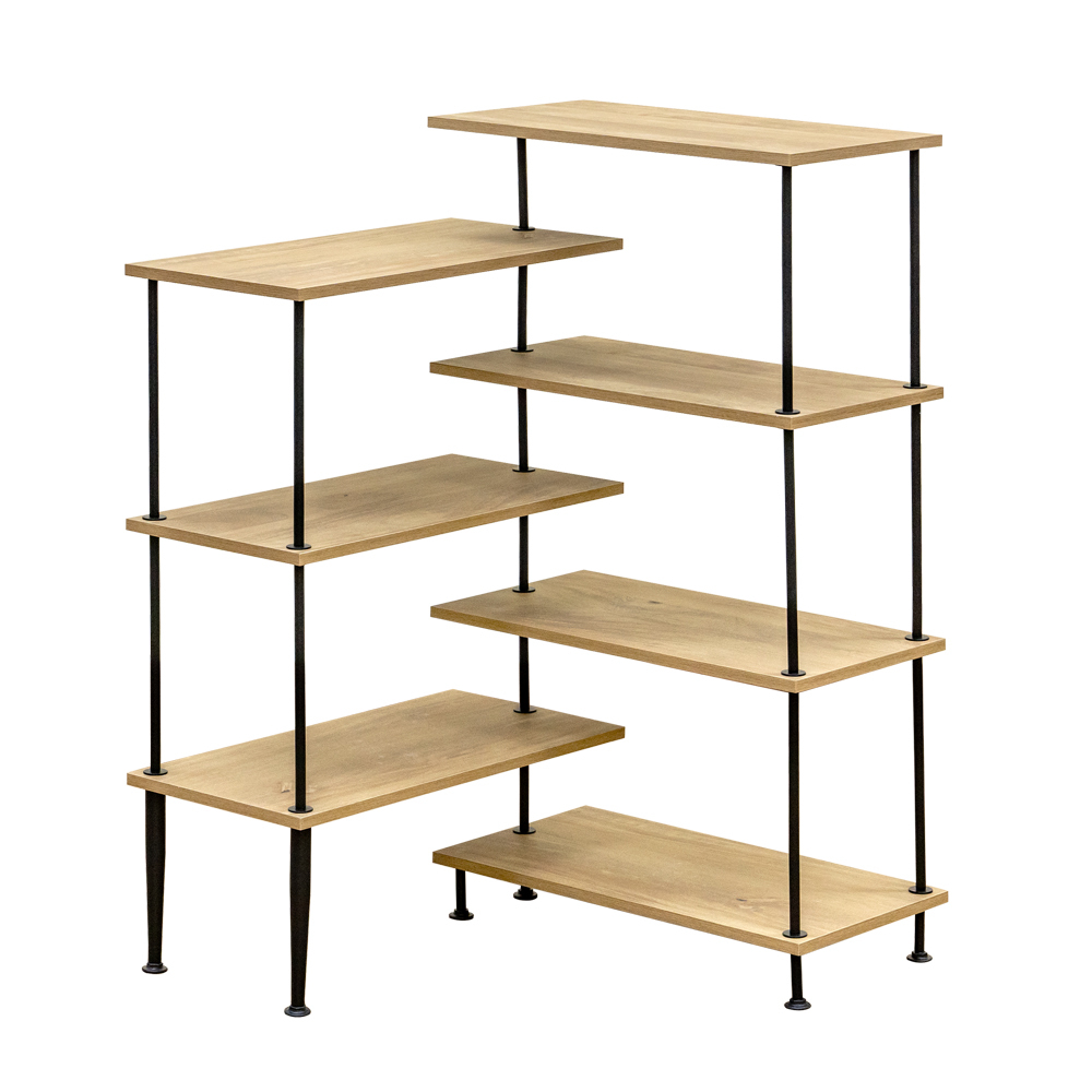 - 収納ラック オープンラック 棚 3段 4段 合計7段 回転式 コーナー対応 L型 L字 対応 ディスプレイ 木製 スチール PLY-06 ナチュラル(NA)