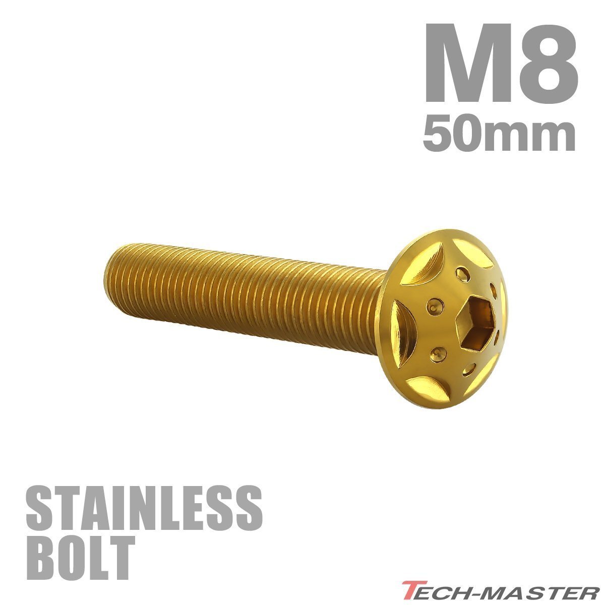- M8×50mm P1.25 ボタンボルト スターホールヘッド ステンレス ゴールド カウル フェンダー 車 バイク カスタム 1個 TR0442