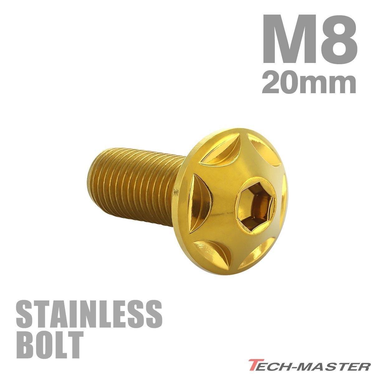 > M8×20mm P1.25 ボタンボルト スターヘッド ステンレス ゴールド カウル スクリーン フェンダー 車 バイク カスタム 1個 TR0514