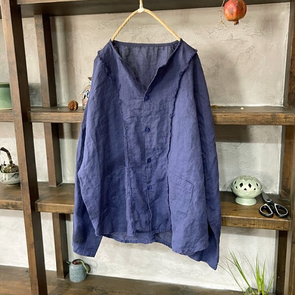 > yc 2509 ワイシャツ チュニック トップス リネン RINEN 麻100% カーディガン 前開け ネイビー