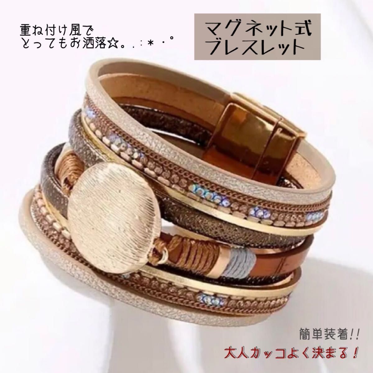 - 新品 ブレスレット 重ね付け風 マグネット式 PUレザー ボヘミアン お洒落