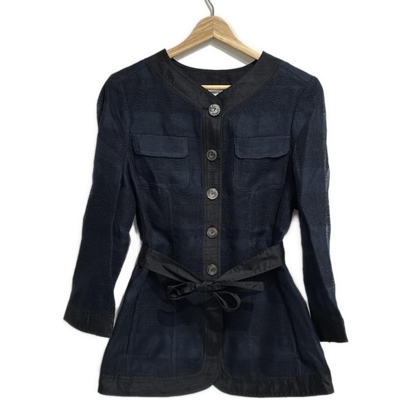 > アルマーニコレッツォーニ ARMANICOLLEZIONI サイズ38 S - ネイビー×黒 レディース 長袖/ミニ/レース/シャツワンピ 美品 ワンピース