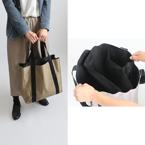 - 送料無料 秋SALE Lサイズ パラシュート防水ナイロン 間仕切りトート バッグ ポケット ベージュ P48C