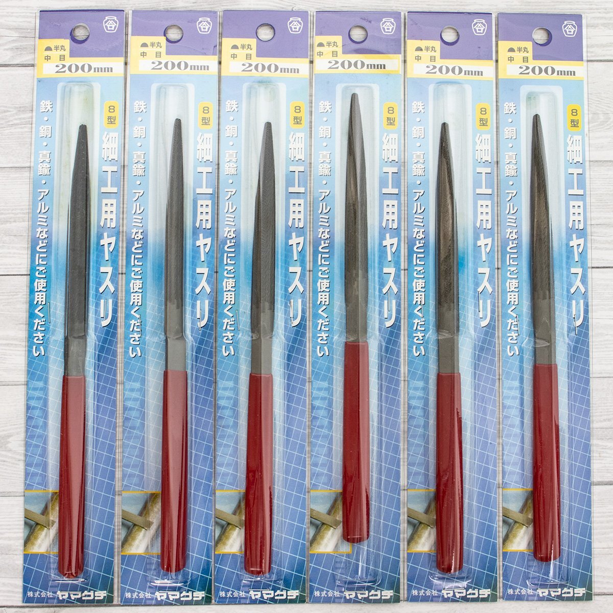 - ヤマグチ 細工用ヤスリ 8型 半丸 中目 200mm / 6本 未使用品 長期倉庫保管品 JAN:4531521000317 鑢