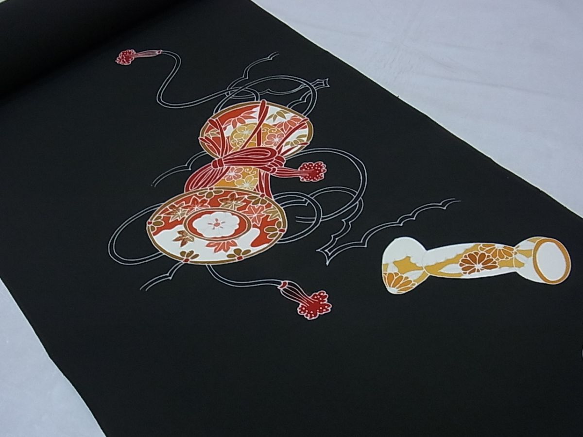 - eふれんず◆羽織 コート 和装コート 反物 羽尺 鼓花文 黒色 正絹 未使用品 未仕立て◆bm1625
