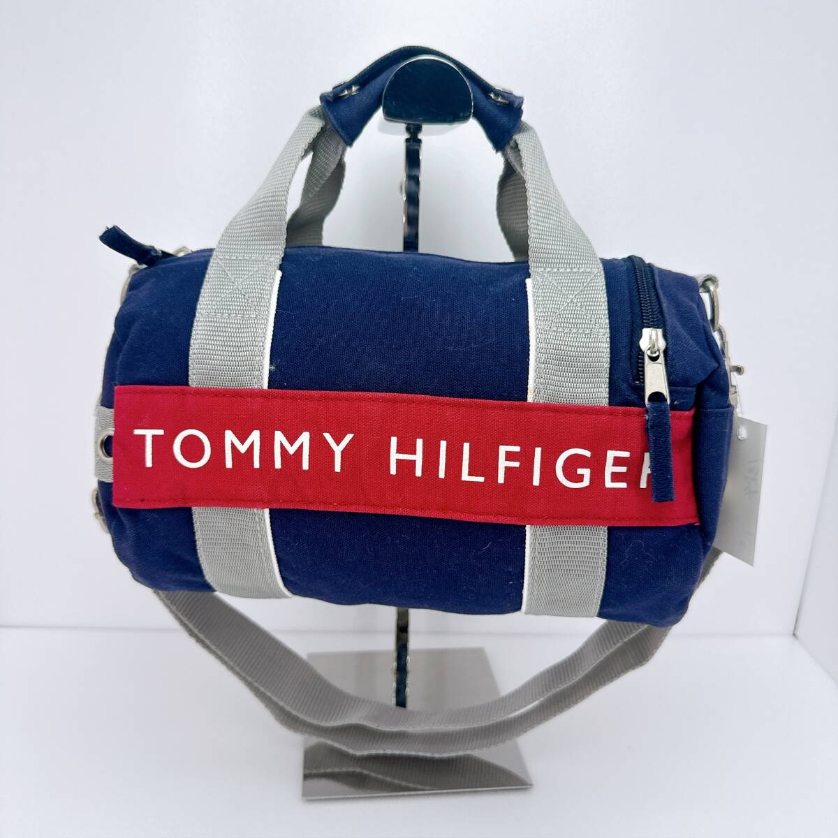 > 1384○ TOMMY HILFIGER トミーヒルフィガー 2WAY ハンドバッグ ショルダーバッグ キャンバス ネイビー 紺 赤 レッド グレー ユニセックス