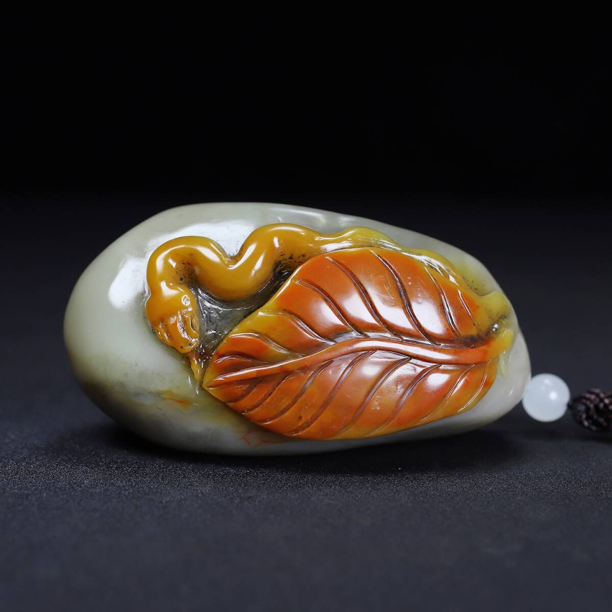 - 唐物 清 寿山石 霊蛇献瑞 手抓件 天然石 手彫 篆刻 極細工 中国古玩 骨董品 古美味 D69