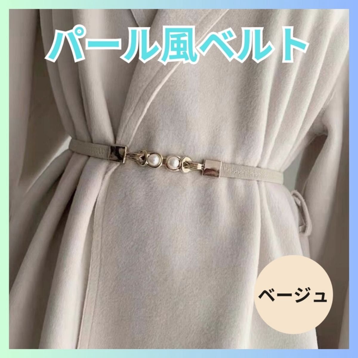 - ゴムベルト細型 レディース 女性 ベージュ×ゴールド フック 上品 結婚式 デニム ワンピース スカート パーティー