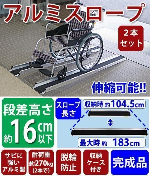 - 伸縮アルミスロープ スロープ長さ約183cm 幅約15.5cm 6FT