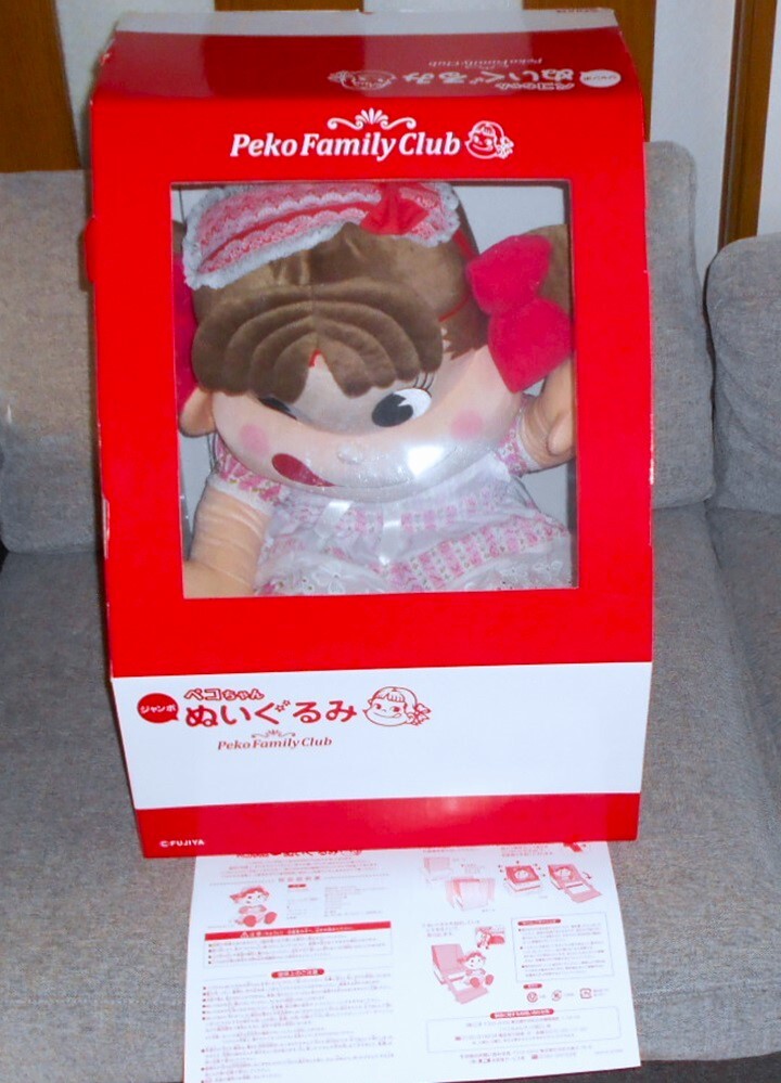 > P41/平置き約75㎝!!不二家 ペコちゃん非売品!ペコちゃん ジャンボぬいぐるみ エプロンドレス ペコちゃんファミリークラブ