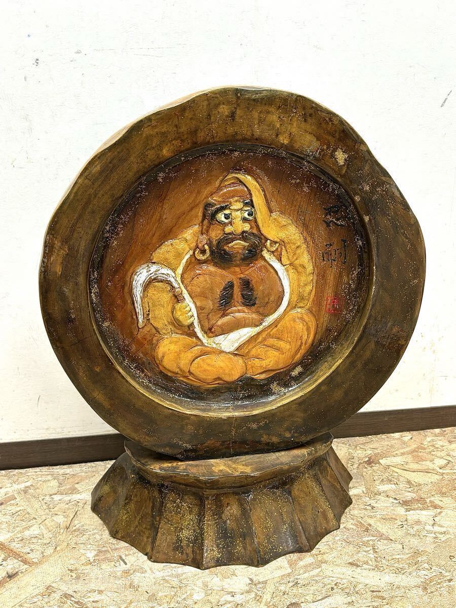 - 置物 木彫 彫刻 東山作 忍耐 工芸品 民芸品 木製 木彫り インテリア オブジェ 達磨 ダルマ 高さ約62cm 幅約49cm 重量約14.9kg