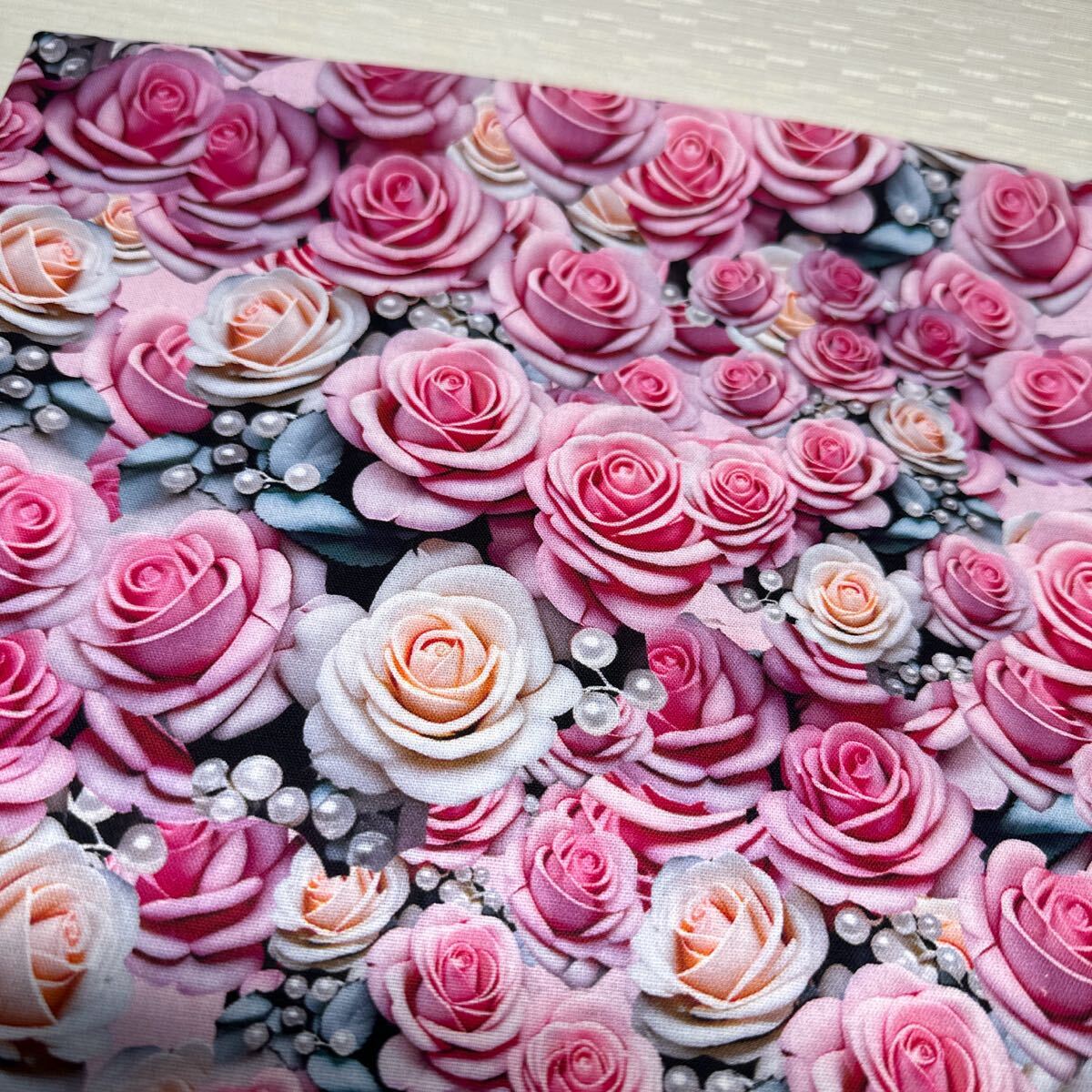 - USA生地.シチンク.綿100%幅110cm×50cm.ピンク薔薇8728