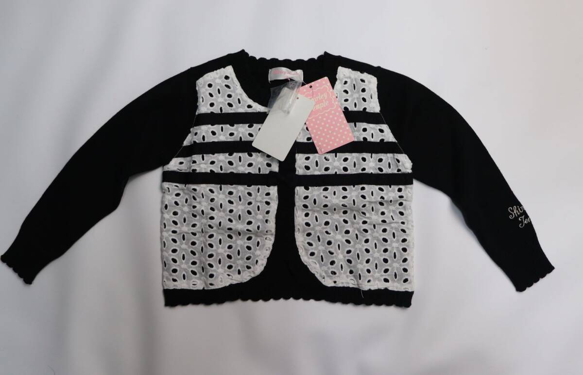 - 新品タグ付き Shirley Temple シャーリーテンプル レース切替 スカラップトリム 長袖ニットカーディガン