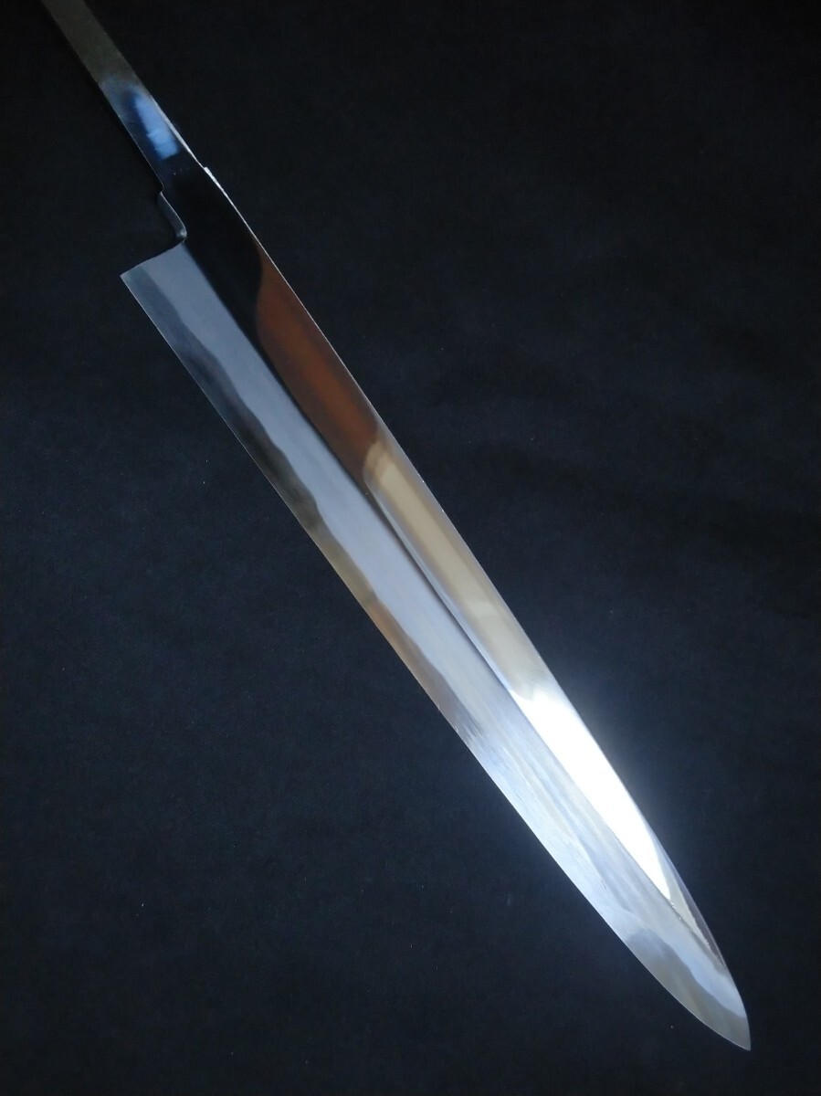 - 城山刃物製作所(堺業務用刃物メーカー直売)九寸 柳刃包丁 青二鋼 平鏡面 黒檀八角水牛柄(口輪白黒選択可)
