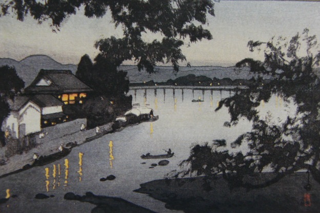 - 吉田博、【日田筑後川の夕】、希少画集画、高級新品額・額装付、状態美麗、送料無料