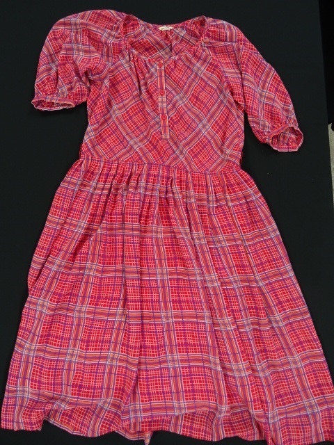 > Chartres ワンピース フレアスカート 半袖 春夏 チェック ビンテージ レトロ 80-90年代 古着 USED レディース サイズ9