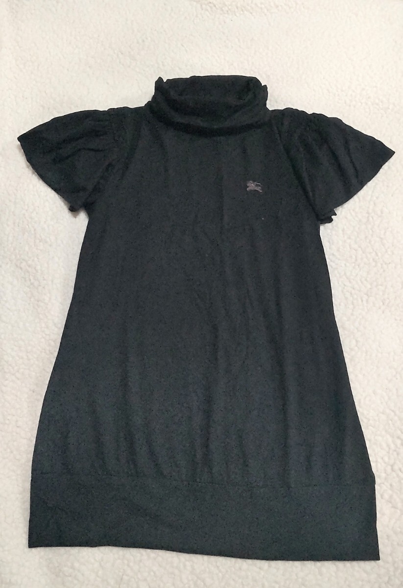 - 送料無料★バーバリーブルーレーベル★タートルネック★ブラック★フレンチ袖★ホースマーク★タートルニットソー★薄手ウール★黒