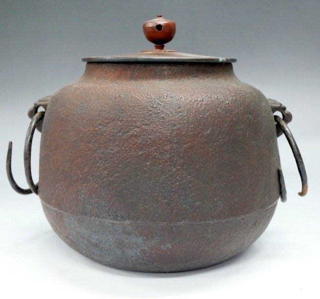 - M708Mちょる【茶道具】阿弥陀堂釜 炉釜 茶釜 鉄釜 金属工芸 胴径16cm 高さ16cm 1.8kg 茶会 茶道 お茶会