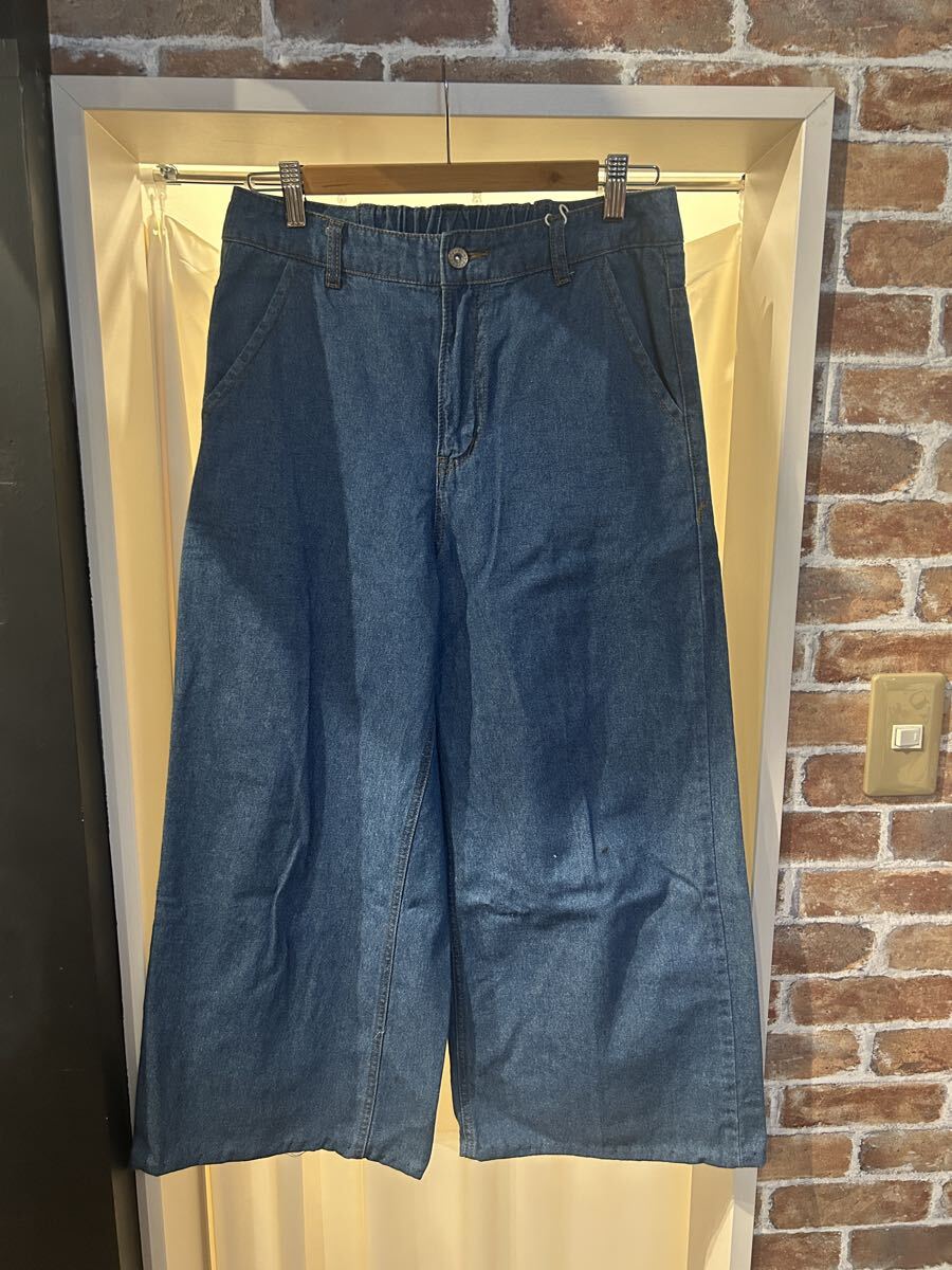 - Y-171 デニムパンツ 薄手 ワイドパンツ コットン インディゴ サイズL レディース