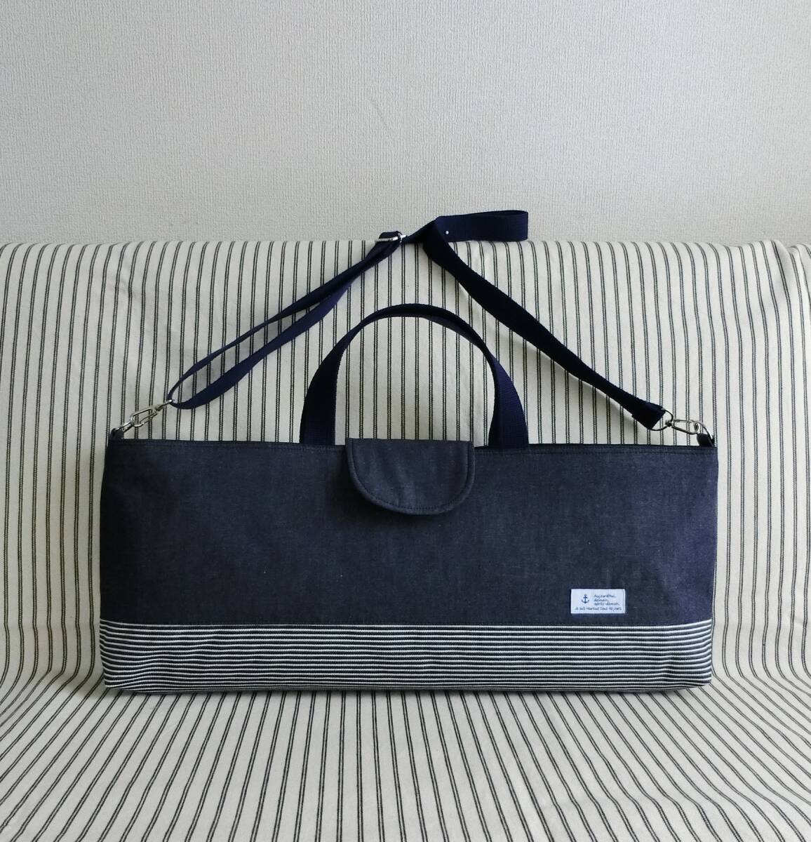 - ■ピアニカケース 紺デニム ヒッコリー ショルダー付 肩紐付き 鍵盤ハーモニカケース ハンドメイド
