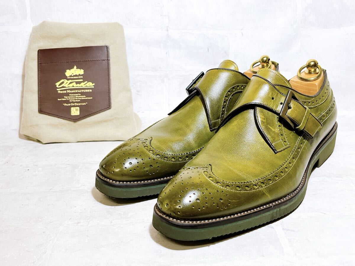 > 1回着【極美品】大塚製靴 オーツカ 高級 ウィングチップ ストラップ ビジネスシューズ 本革 レザー カーキ 42(約27cm)メンズ 紳士靴