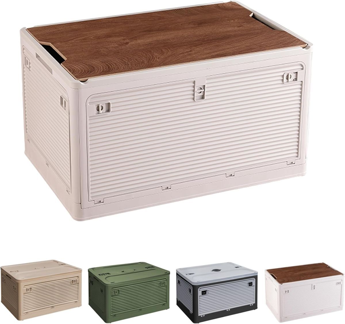 - 【新品送料無料】Hellozebra【新設計】収納 コンテナ ボックス「折り畳み蓋付き全方向から取り出せる」収納ボックス カーキ キャンプ