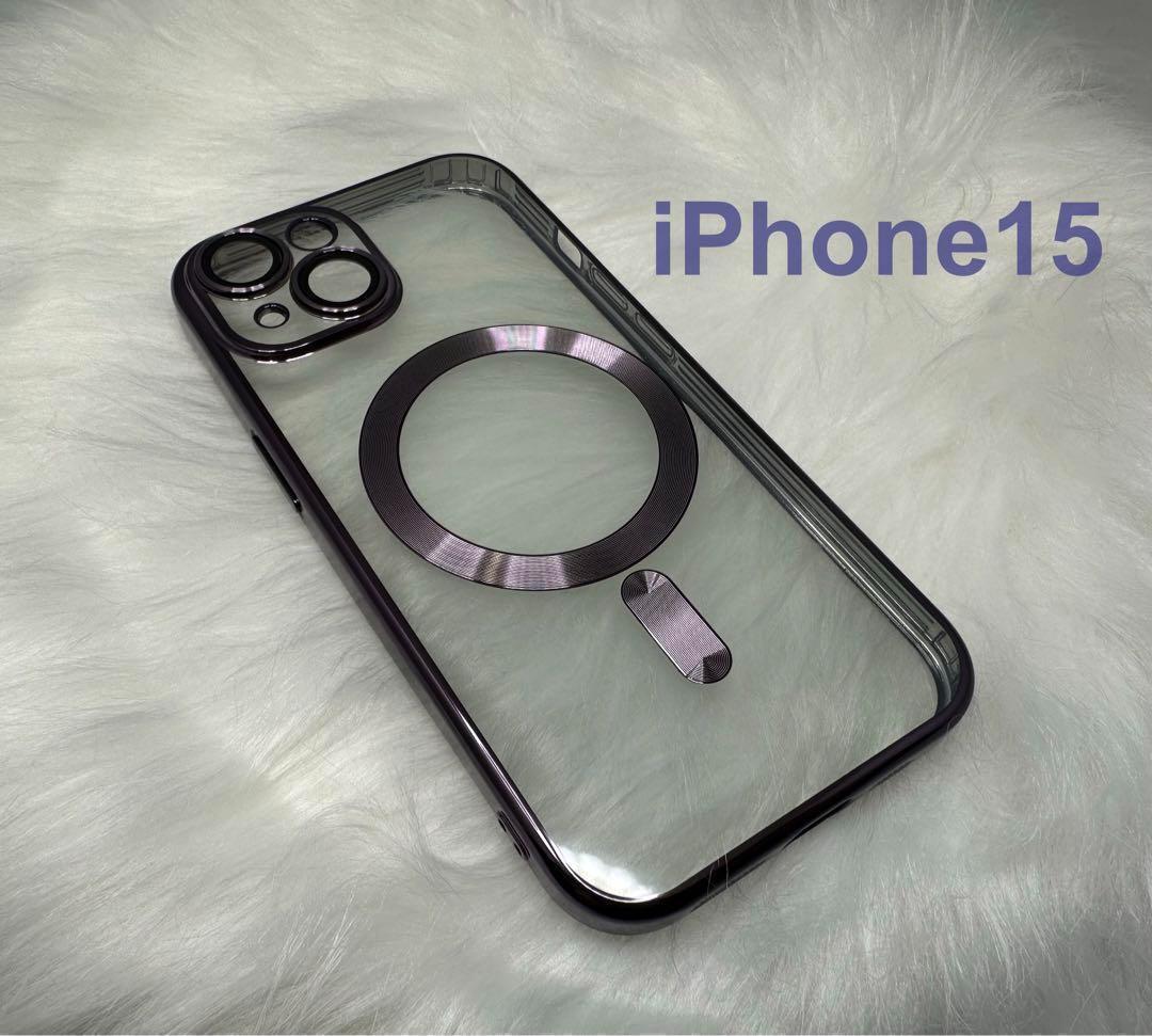 > iPhone15 ケース 【未使用】 カバー パープル 紫 レンズ保護一体型