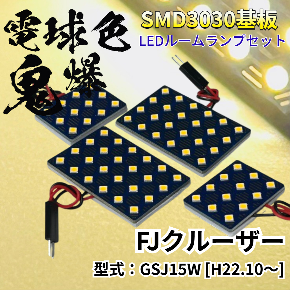 - 【電球色】GSJ15W FJクルーザー 適合 鬼爆基板 3030SMD LED ルームランプ セット 車内灯 室内灯 パーツ アクセサリ 読書灯