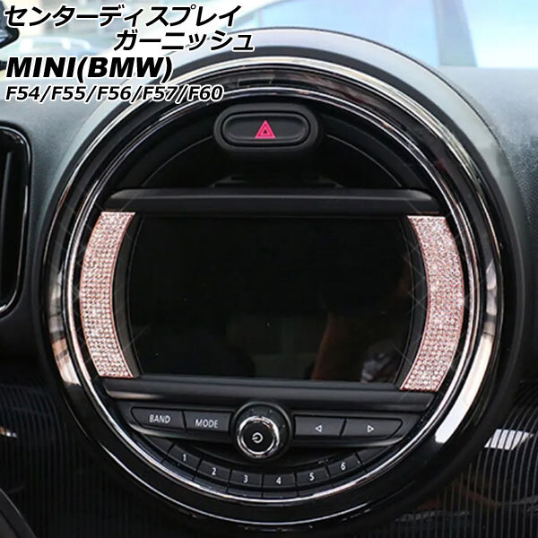 > センターディスプレイガーニッシュ MINI(BMW) F54/F55/F56/F57/F60 6.5インチナビ搭載車用 ピンクゴールド ラインストーン付き 2個