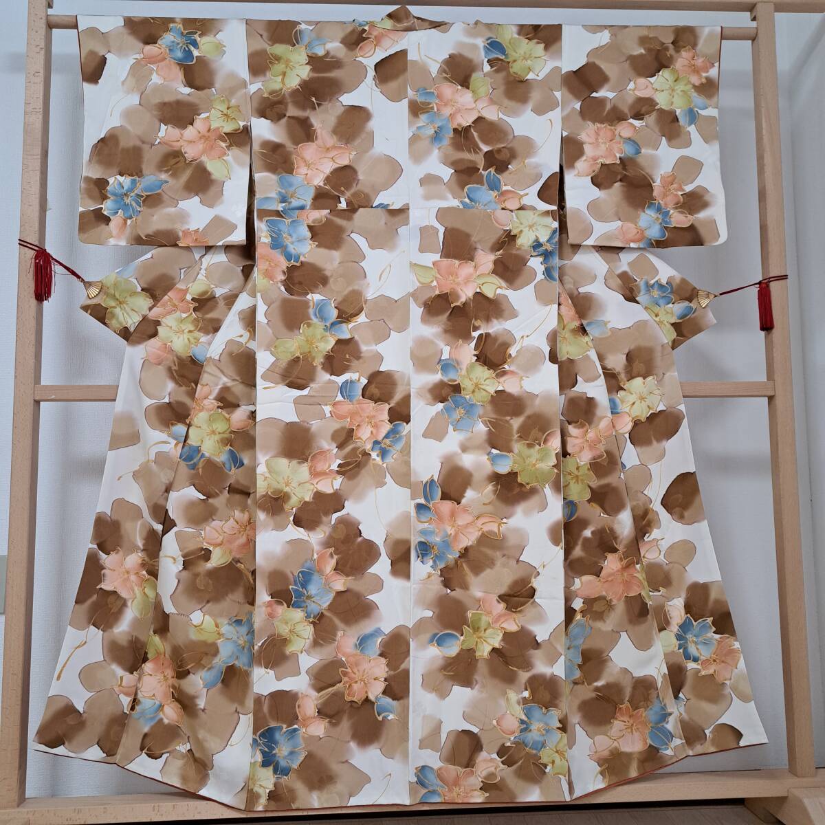 - 即決■着物の越田■裄67.5身丈155 正絹 小紋 地紋 ゆったりサイズ 花柄 カジュアル 普段着 おでかけに ■む09R08