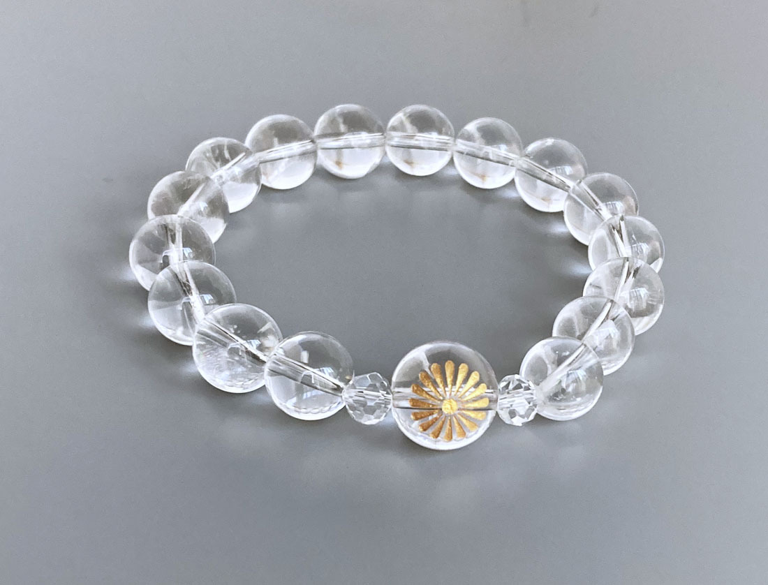 - 天然水晶・菊紋ブレスレット 18cm