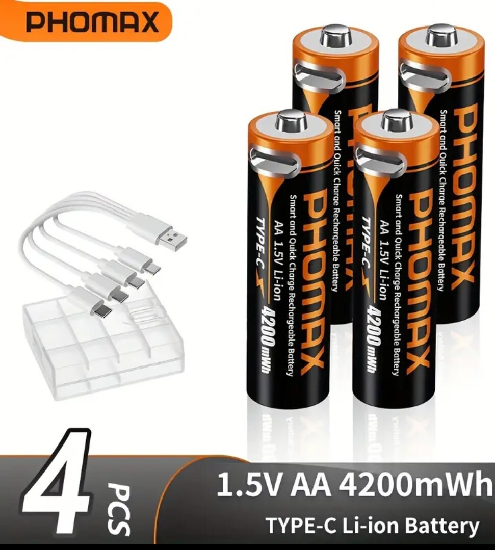 - 単3リチウムイオン電池 1.5v 充電ケーブル 専用ケース付き 送料無料 最新 高容量 数量限定 単4電池 充電式 電池2本 無料