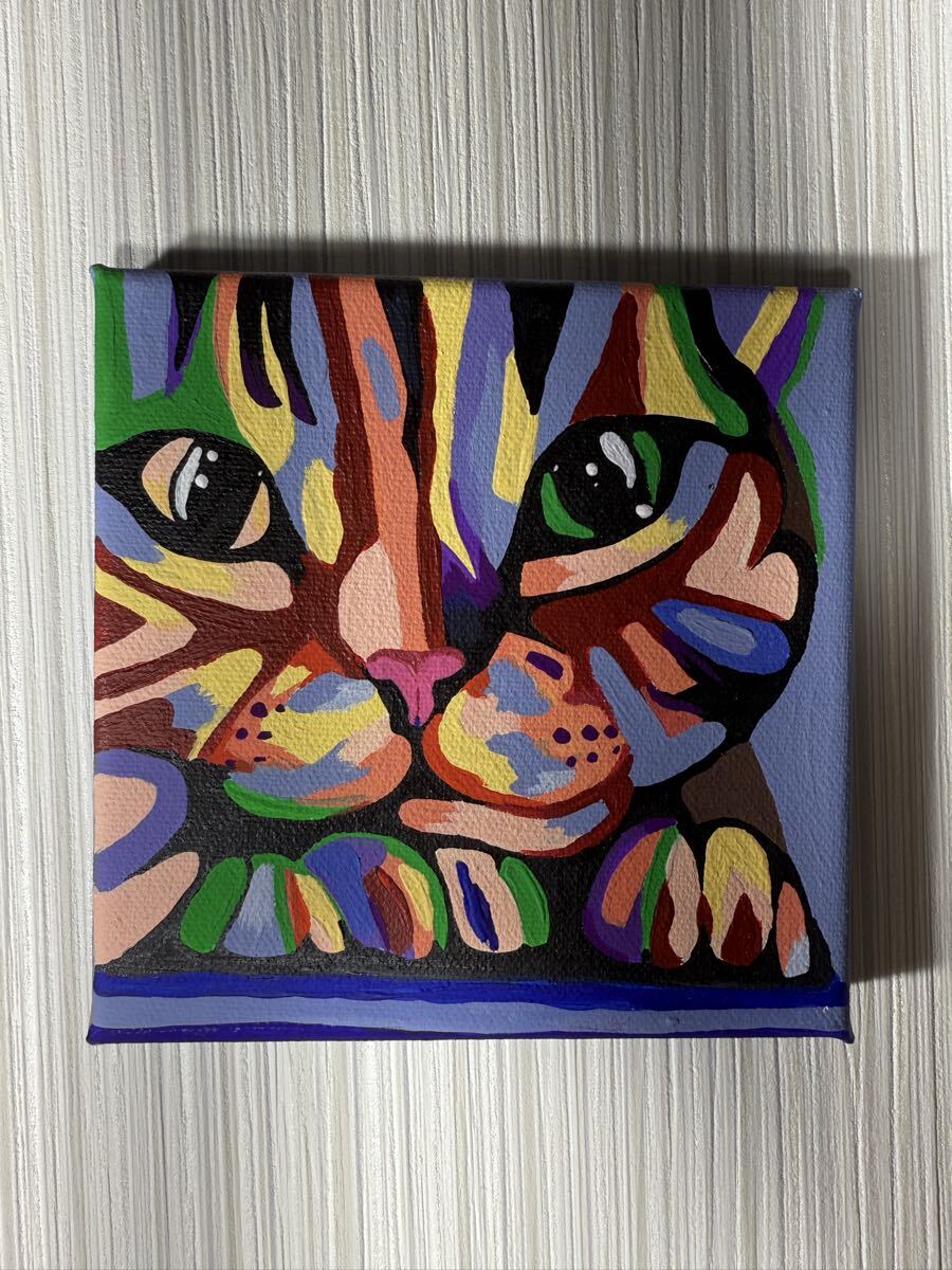 - ポップアート 猫 絵画 キャンバス サイズ:たて14cm横14cm